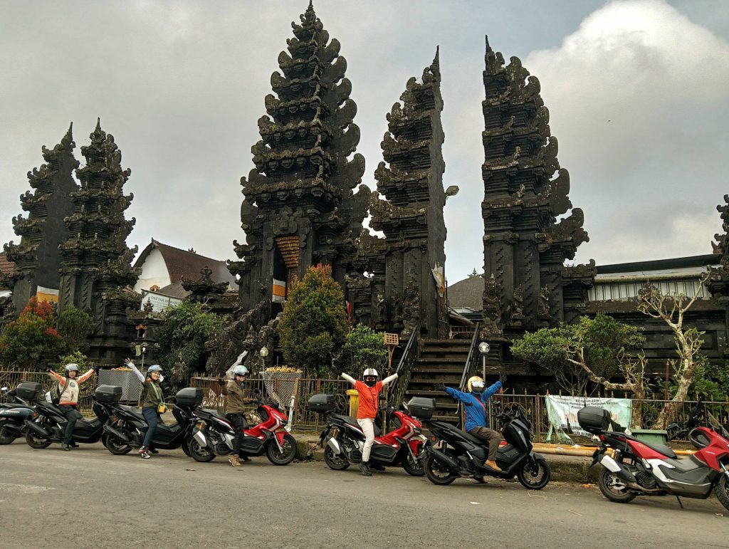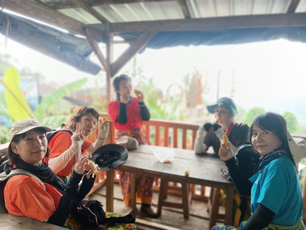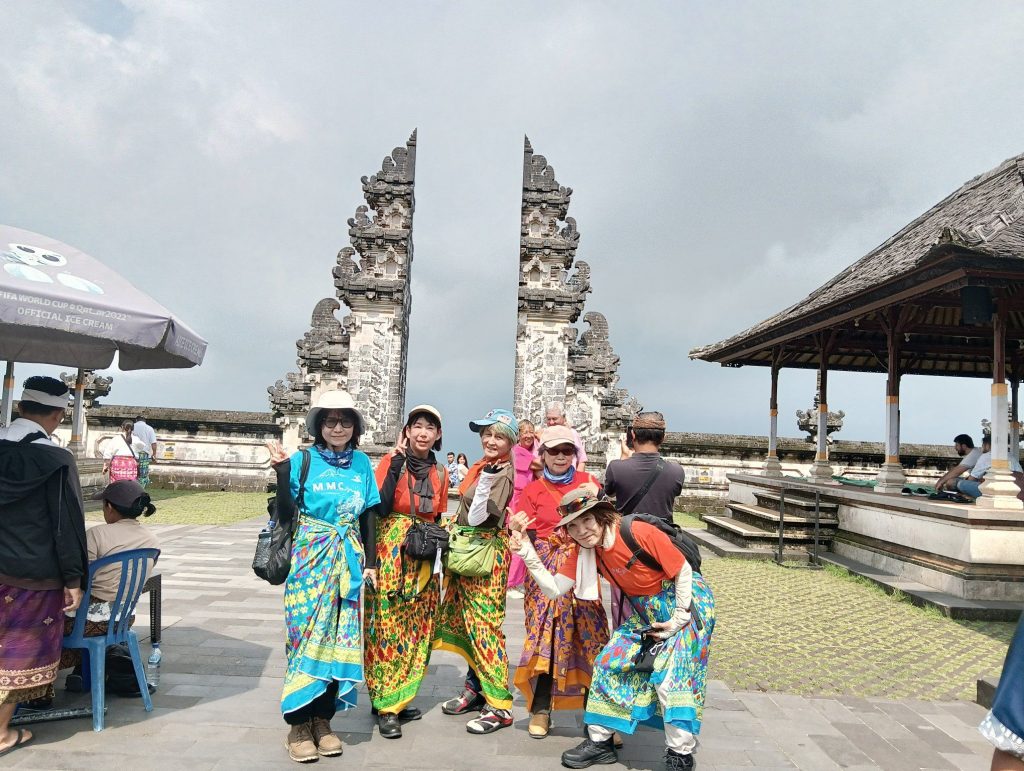 午後はキンタマーニ高原方面へ。山を登る途中で一時、霧の中で何も見えない状態に💦やがて雲の上に出たのか、頂上付近は雲が晴れました。ウルン・ダヌ・バトゥール寺院の前で記念写真。