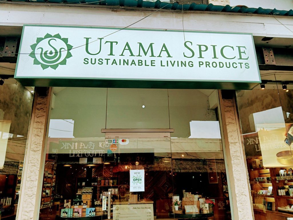 女子ツーだからといって、毎日宴会というわけではありません。「今夜は自由行動にしよう」ということになり、ホテルにチェックイン後は各自それぞれの場所へ。王宮のバリ舞踊を観に行く方、SPAに行く方、それぞれ思い思いの方向へ。散歩中、ウブドが本店のバリ・コスメ「ウタマスパイス」の店もたまたま発見しました。