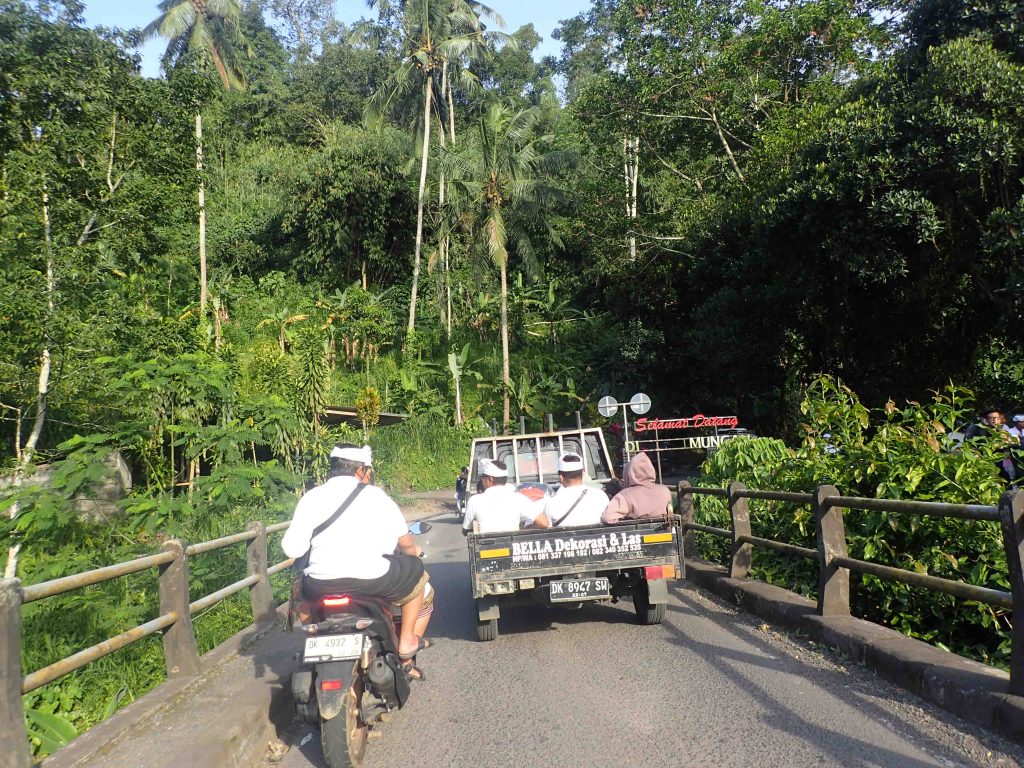 チャンディーダサを出発してすぐ姿を見せるサン・ヒャン・アンブ寺院。 古代バリの建築様式と石器時代を融合させた設計で、生命のサイクルを象徴する円形のデザインが施されているそうです。周辺には猿がたくさんいて、バイクの上にグローブ等を置いておくと、あっという間に取られてしまうので要注意です。