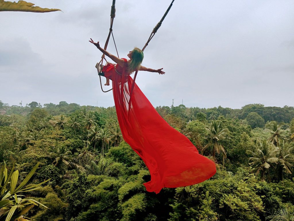 今やバリ島名物!原生林に向かって漕ぎ出す空中ブランコ!