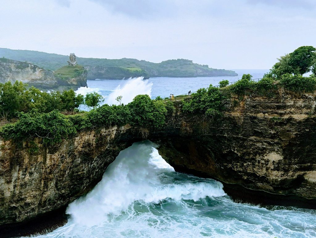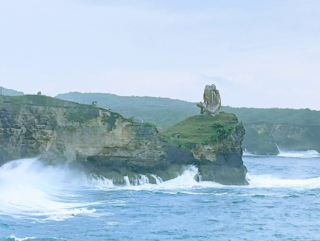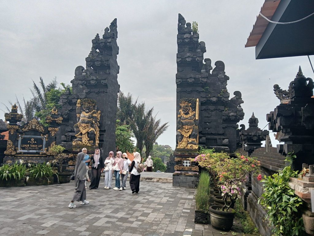 朝、再びタナロット寺院に散歩に出かけました。ホテルは料金所のゲート内にあるため、参拝は自由です。朝はバリ島外のインドネシアからの修学旅行生が多かったです。頭にスカーフを巻いた女子高生たちを見ると、インドネシアはやっぱりイスラム教の国なんだな、というのがよくわかる風景。