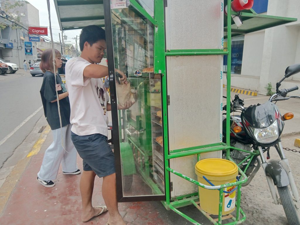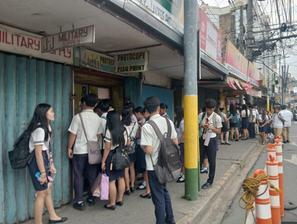 学生たちもジプニーで通学。学校近くの売店に学生が殺到していますが、何を買っているのでしょうか?