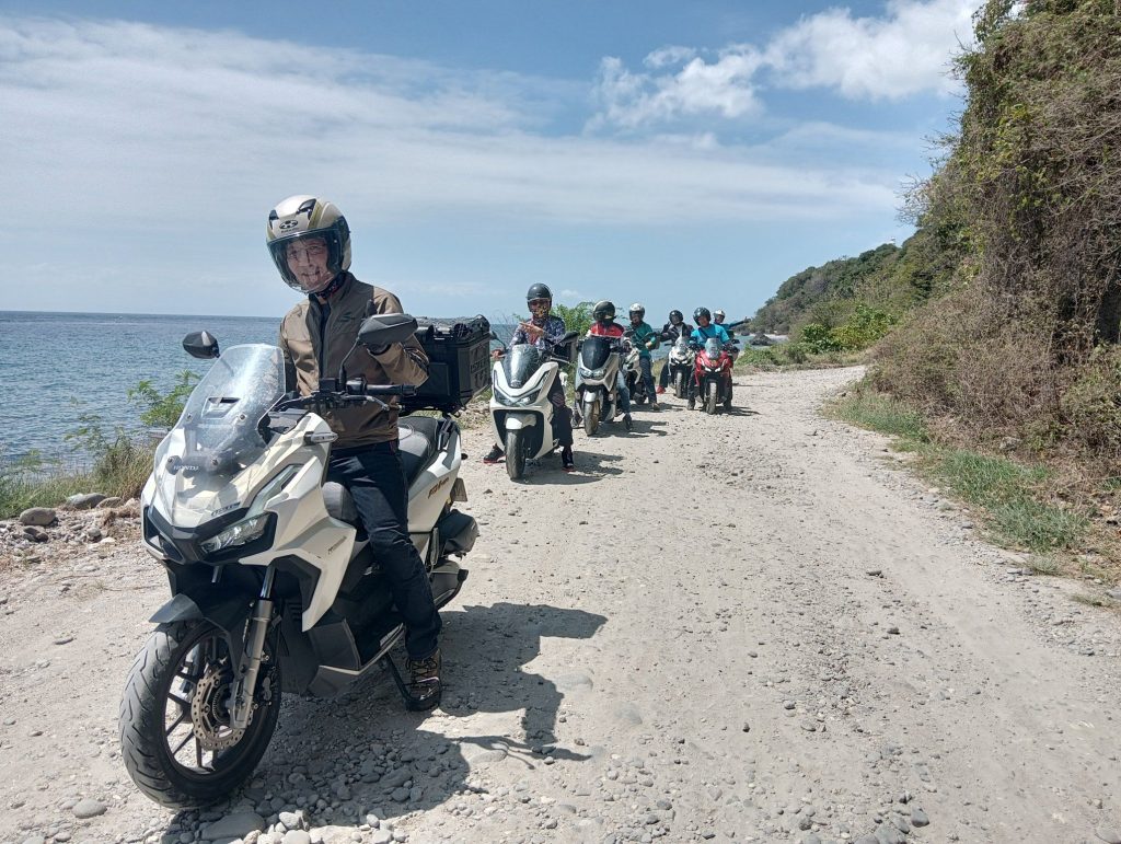 なんと、とうとう未舗装になってしまいました💦スクーターでオフロードを走ることになるとは((+_+))でも、今回のバイクのほとんどがHONDA ADV150/160。ADVの本領発揮?