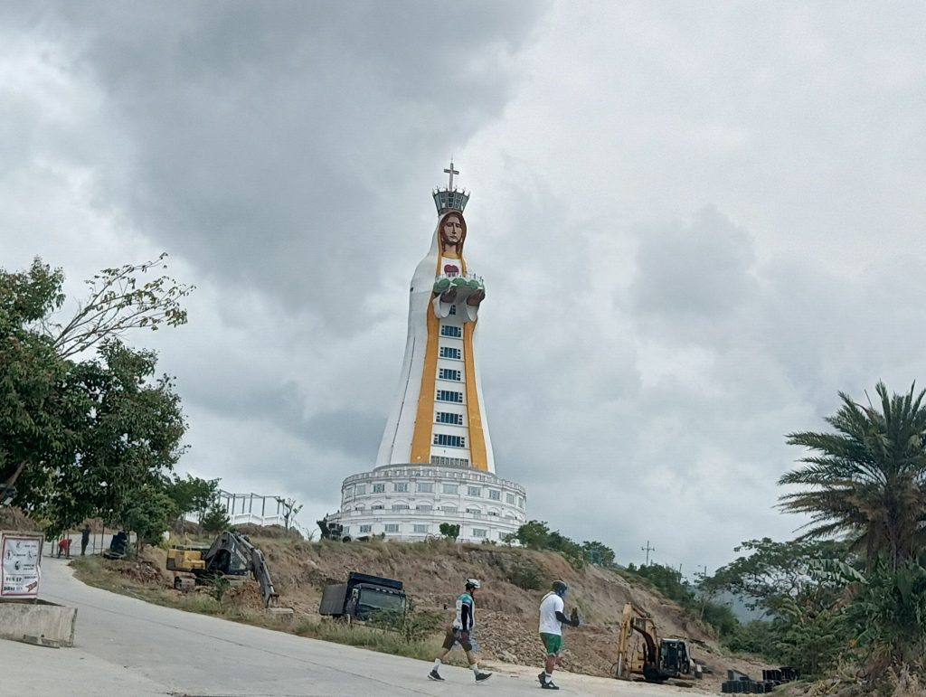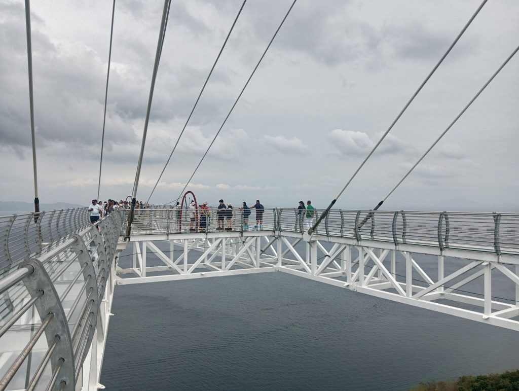 岬の突端にマリア様の塔が立っていました。そして、最近流行りのガラスウォークが!