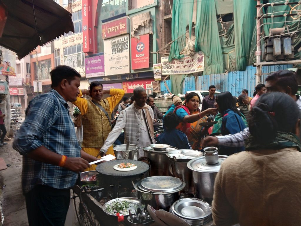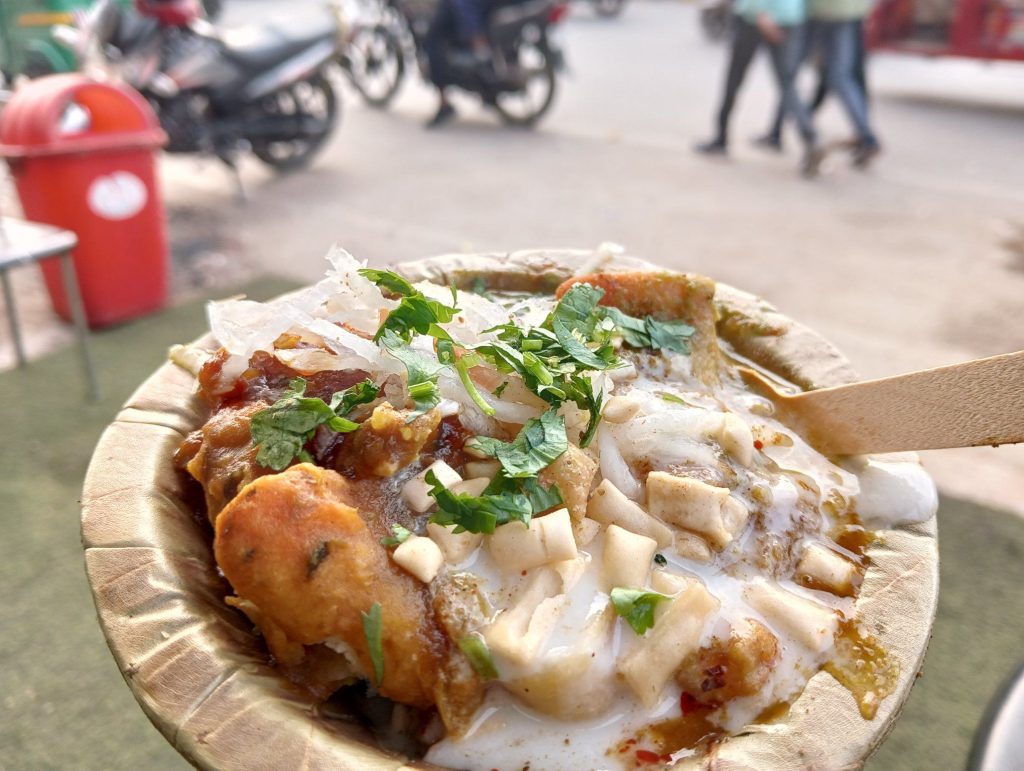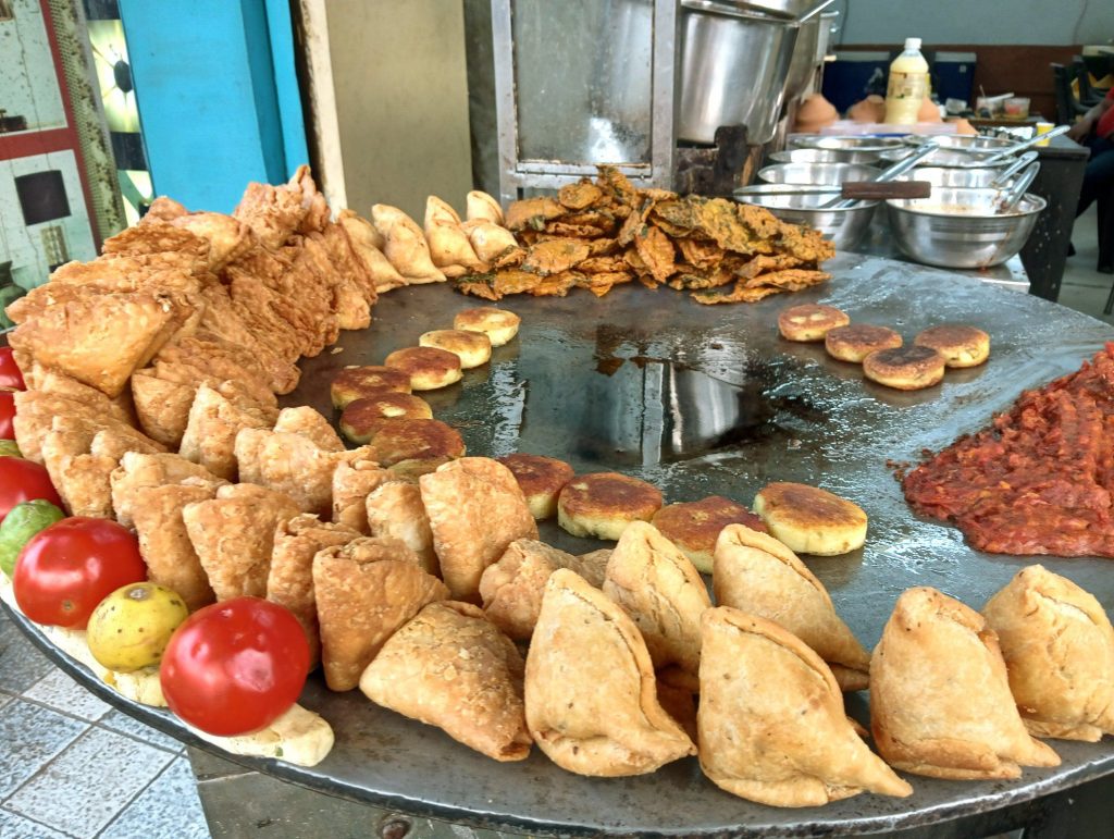 インドのコロッケ、サモサ屋を発見。1個だけ立ち食いしようと思ったら、こんな風に豪勢に盛り付けられました。サモサ1つでいろんな食べ方があるみたいです。