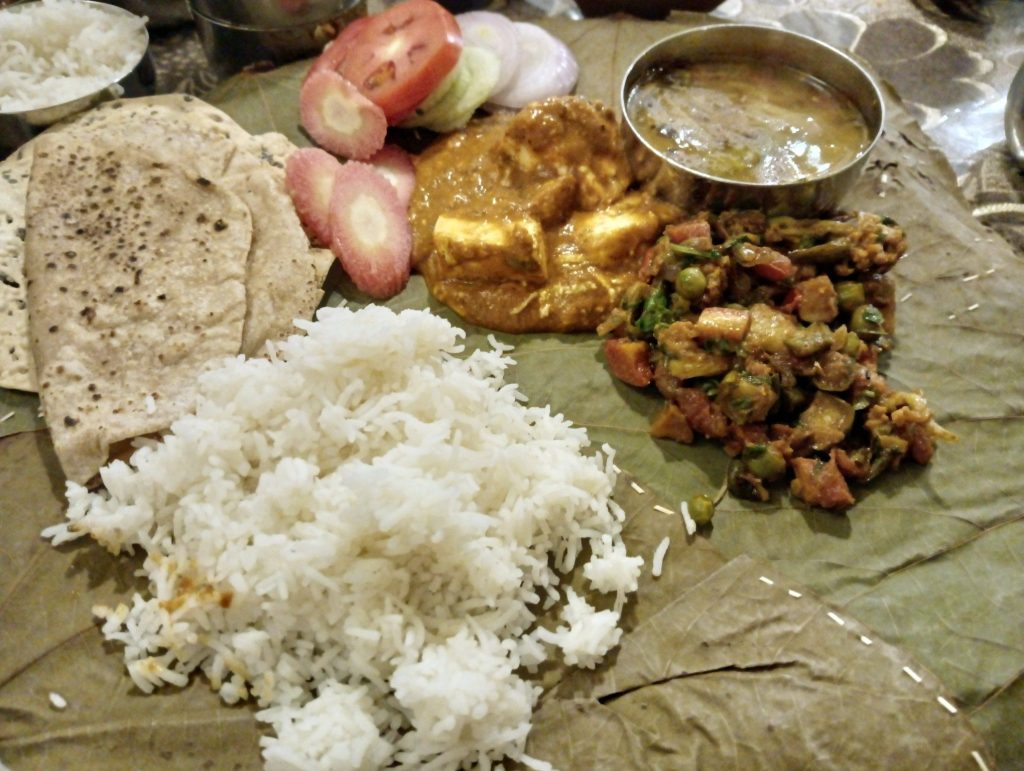 夕食はインド北部料理のレストラン。お皿の代わりに葉っぱでした。素敵です。