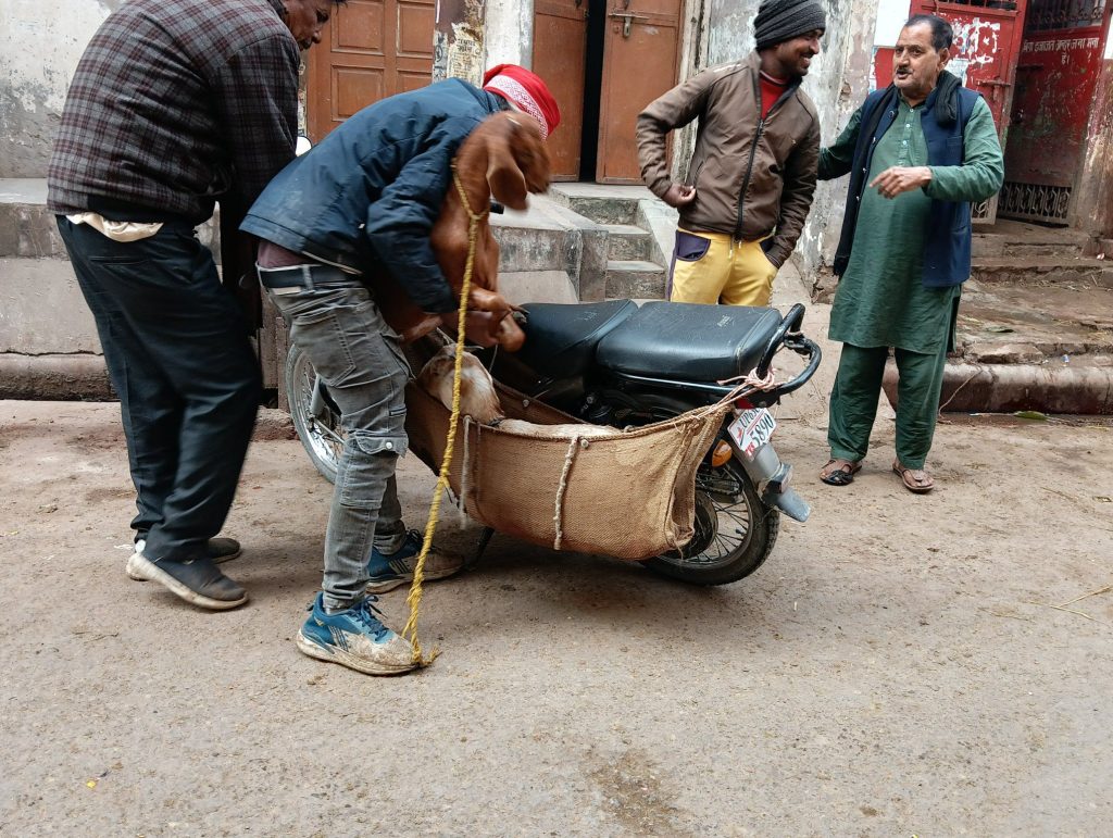 路地裏を歩いていたら、麻袋を両側に装着したバイクが並んでました。これは何を運ぶためのものだろ?と思ってたら、目の前は山羊の市場が。なんと、この麻袋のようなサイドバッグは山羊を運ぶためのものでした。