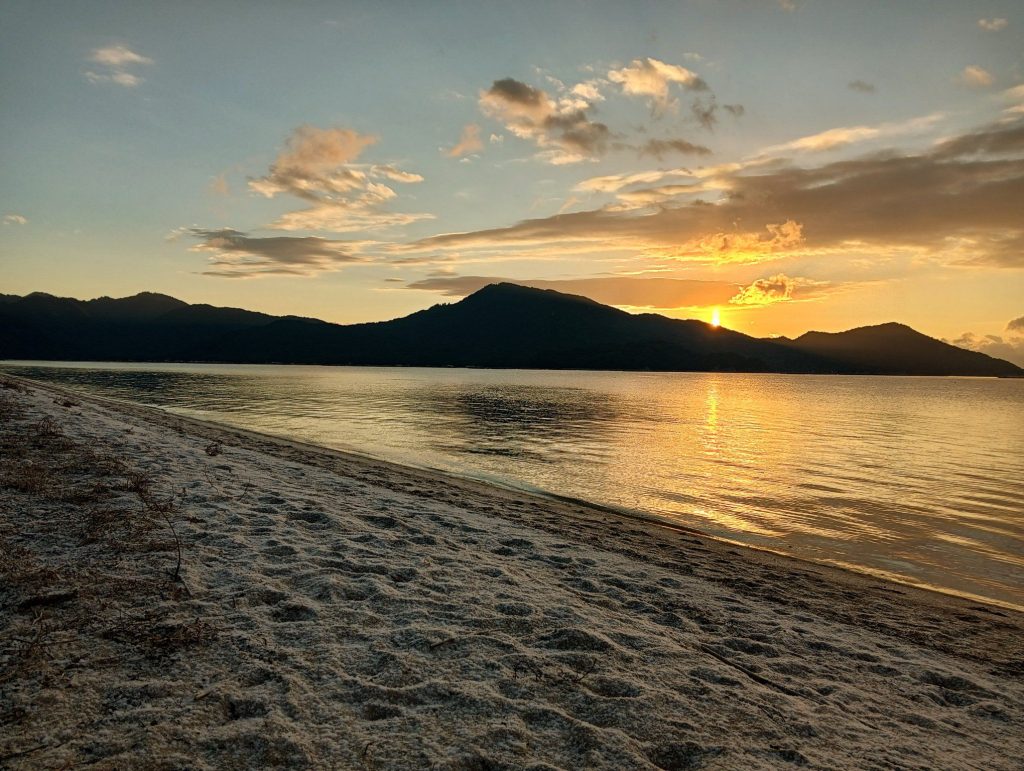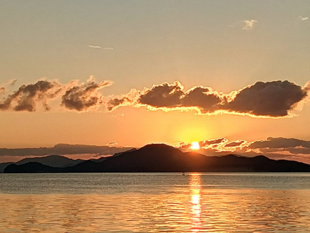 翌日は玖波の鳴川ビーチにて、宮島から昇るご来光。