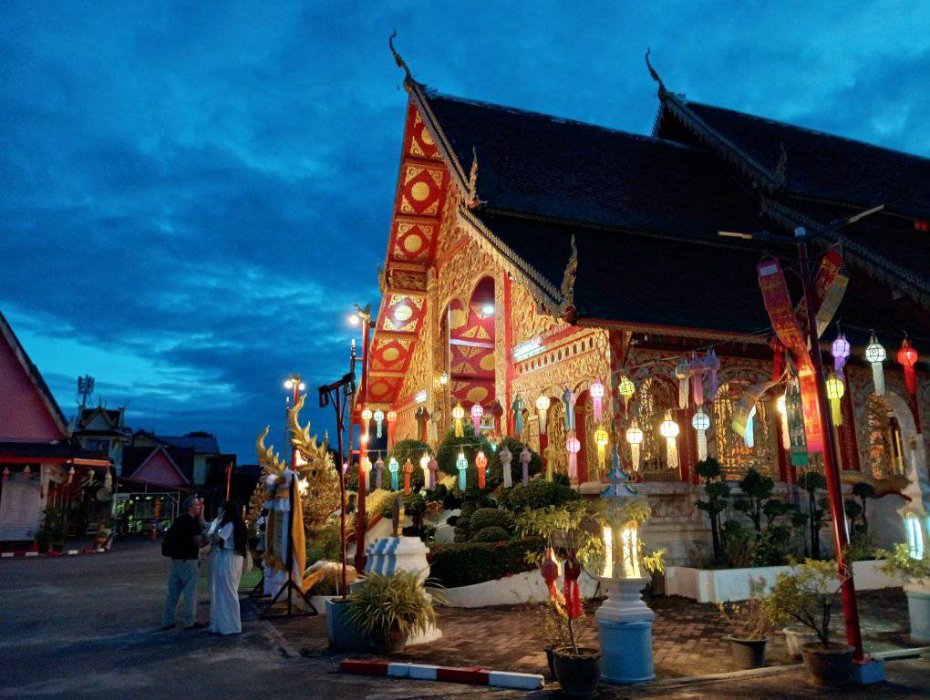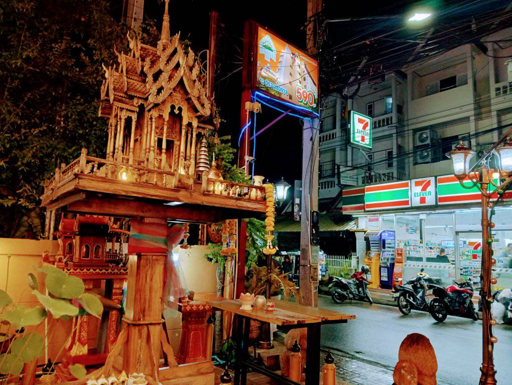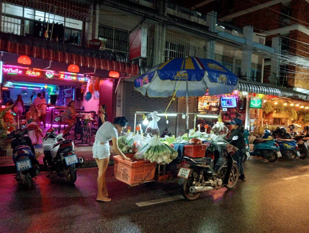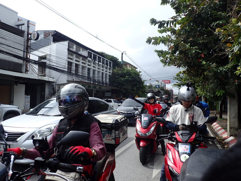 バンコクで飛行機を乗り継ぎ、チェンマイに到着。飛行機が少し遅れて、ホテルに到着したのは夜の21時頃。タイは乾季に入ったはずなんですが、雨季が長引いているような感じで、出発前に見た天気予報ではずっと雨模様💦到着したその日も雨でした。それでも、ホテル前のこの活気ある雰囲気。夜遅くでもトゥクトゥクが走りまわり、BARの前にサイドカー屋台が通りかかり、運転手のおばちゃんが何か叫ぶとBARの客は何かを注文している・・酒のツマミを買ったのか、野菜を買ったのかは不明ですが、いきなりアジアな世界が見れて楽しい夜です。