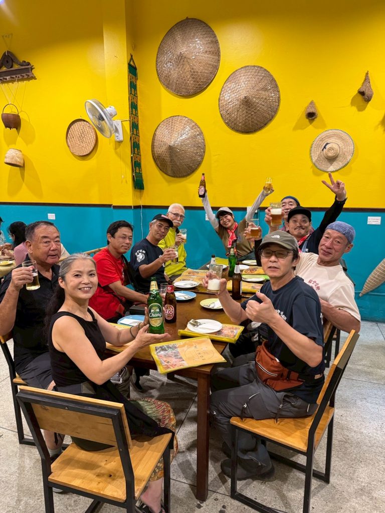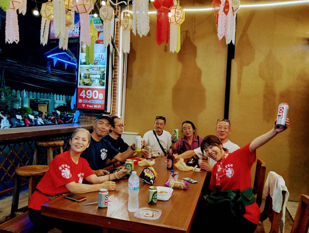 夕食はホテルのすぐ前にあるローカル食堂にて。ソロツーリングでタイを旅しているS様も奇跡的に合流!ビールもたくさん飲みました。