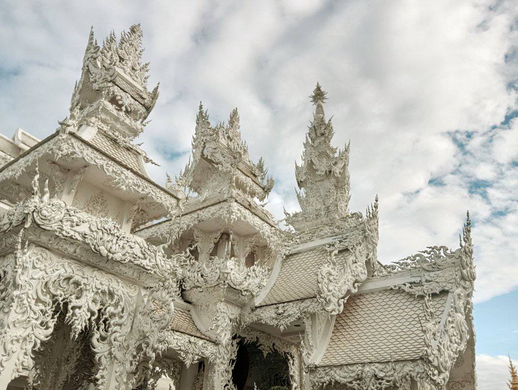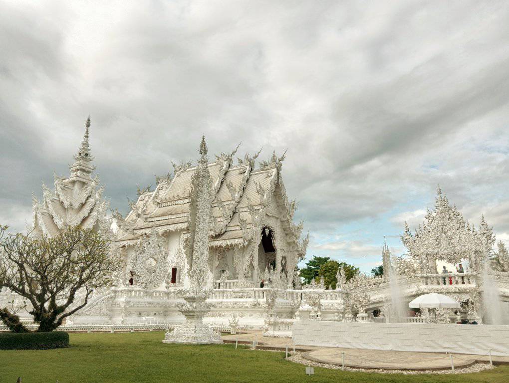 その後、チェンライ郊外に建つ白亜の寺院、ワット・ロンクンへ。寺院というよりはテーマパークのように作られたお寺ですが、それでも近くで見ると大迫力。