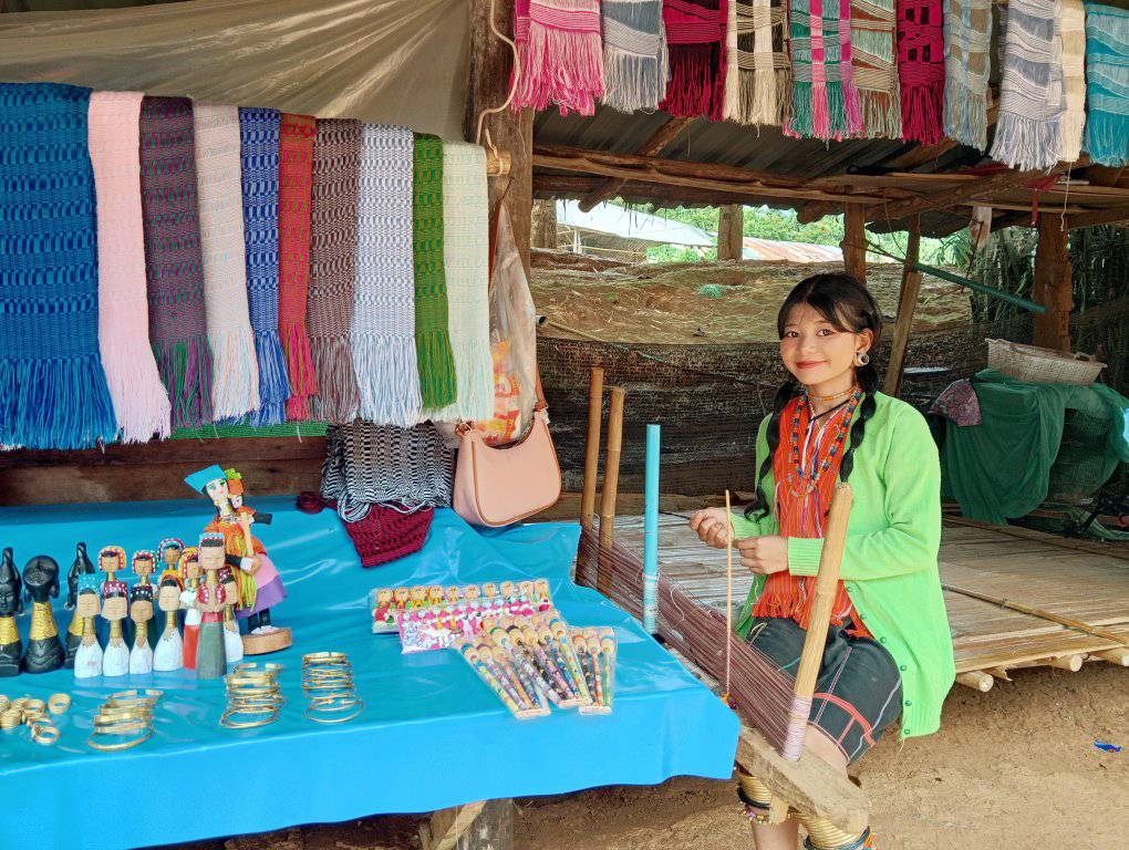 カラフルな民族衣装を来た女の子が、その場で手織りで布を編んでいます。売ってるのはすべてこの場で作られたハンドメイド。想定以上に素敵な文化村。ツアーの予定には入れていなかったので、サプライズでした。