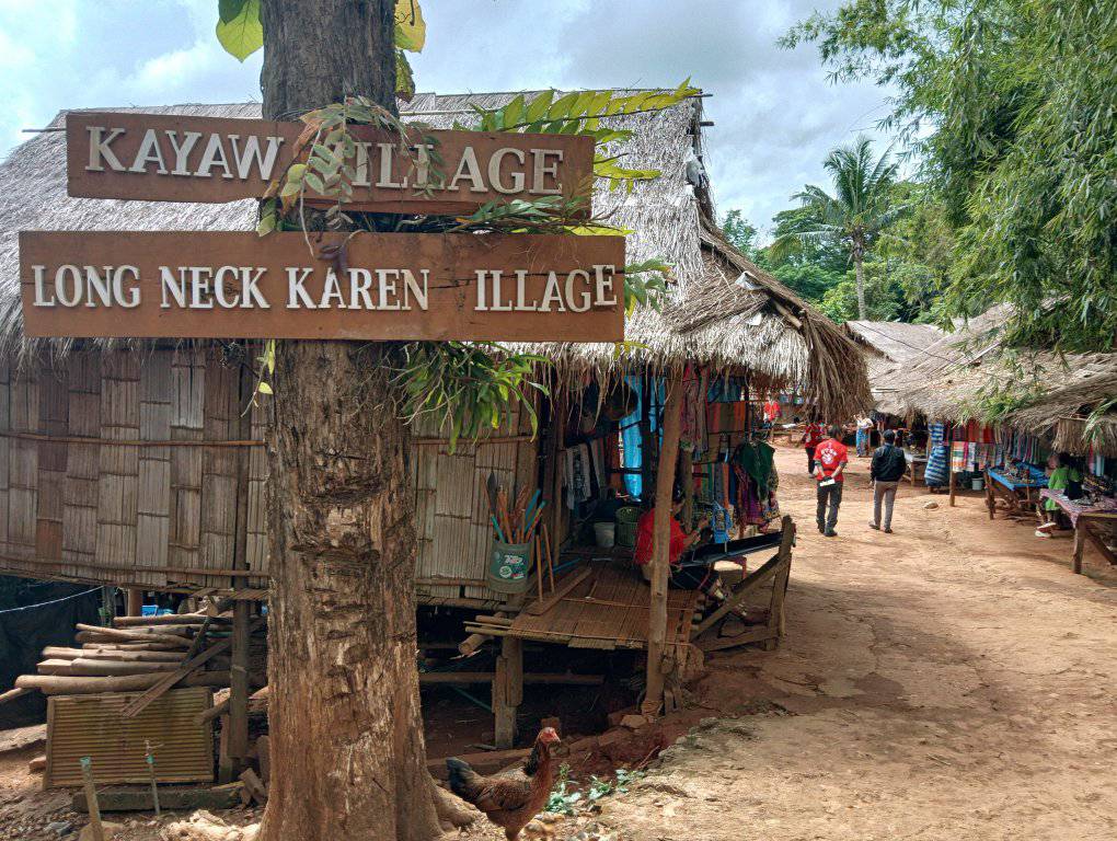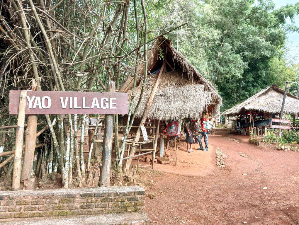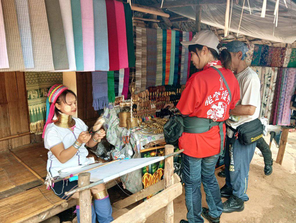 ヤオ族、カレン首長族など、いろんな民族ごとに集落が分かれていて、それぞれが民芸品を売るお土産屋さん並んでいる、というような施設でした。