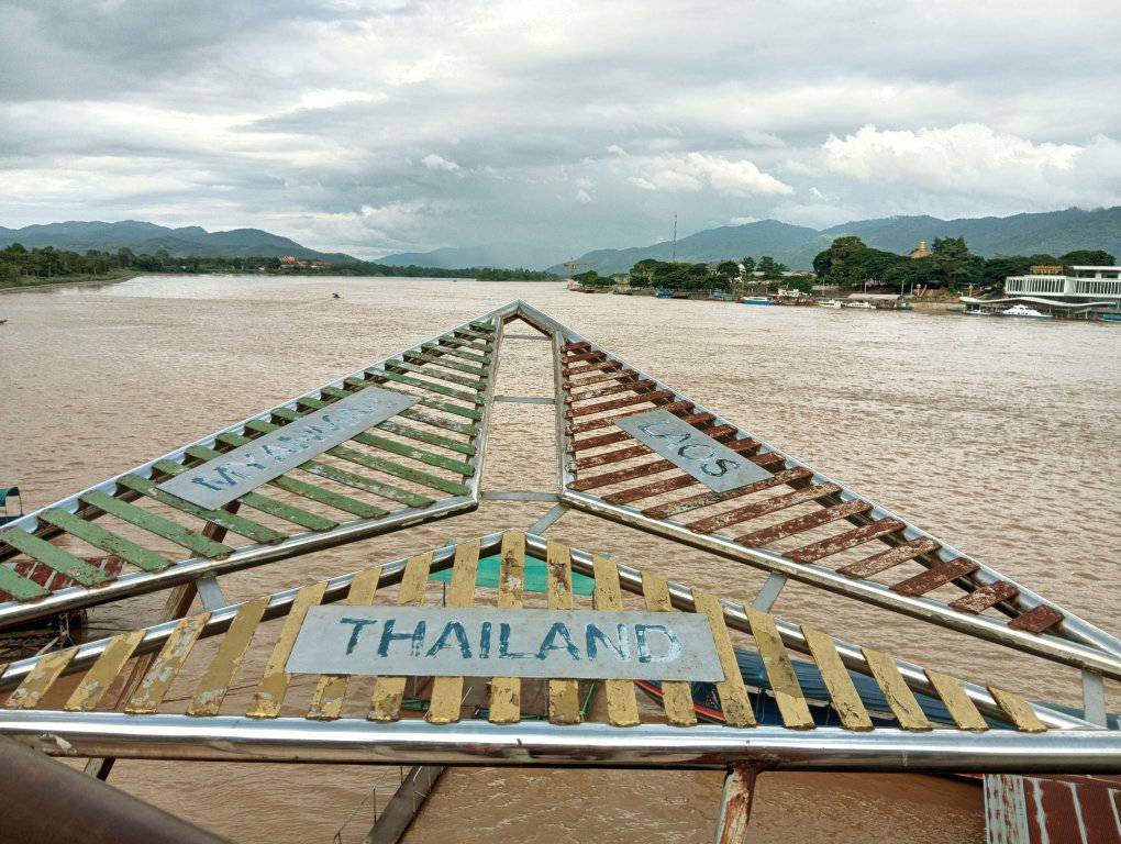 ここはタイのミャンマーの国境を流れるルアック川と、タイとラオスの国境を流れるメコン川の合流ポイント。有名なこの看板が見たくてはるばるやってきたのですが・・・!