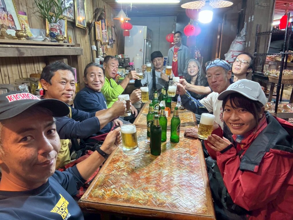能登復興チャリティシャツでお揃いのツアー参加者たち。能登復興とこのツアーの安全を祈願。