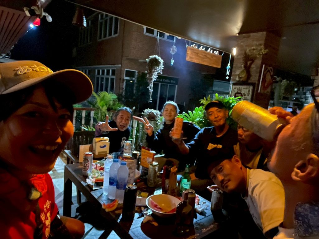 ひょっとしたら今夜もコンビニ飯かも・・?と思ってたのですが、アットホームでめちゃくちゃ楽しい時間を過ごせました。そのままホテルのテラスで2次会へ突入。