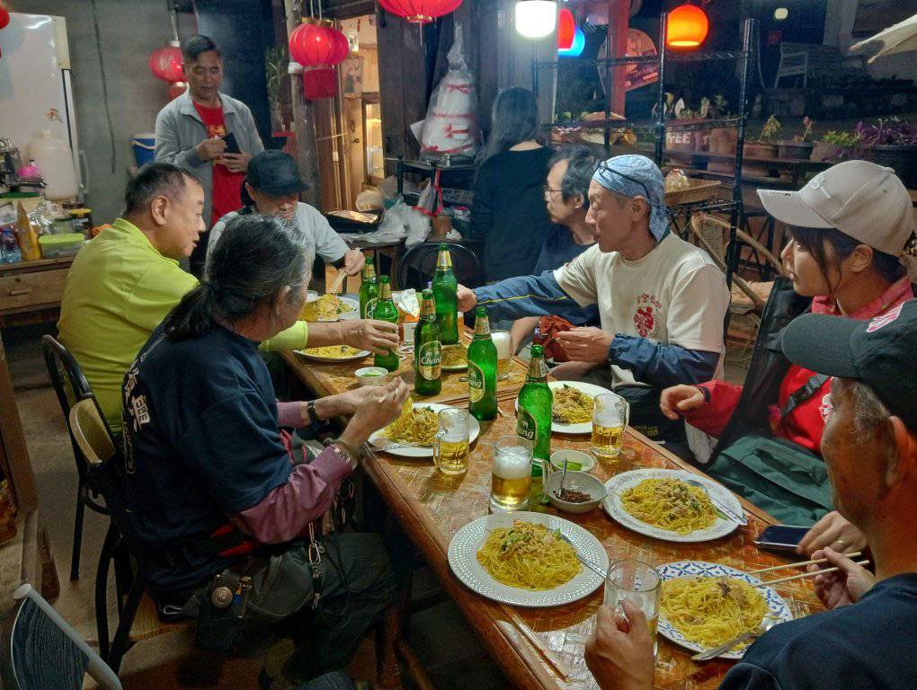 山の中の小さなゲストハウスだったので夕食場所を心配してたのですが・・なんと近くのパン屋さんの店の奥で食事ができました。昔、駄菓子屋の奥でお好み焼きを食べさせてもらったような雰囲気?ビールも頼めば近所の店?から仕入れてきてくれました。英語が全然通じないのですが、お客様もガンガンお店のスタッフに話しかけて、コミュニケーションとれるのが不思議です🤣