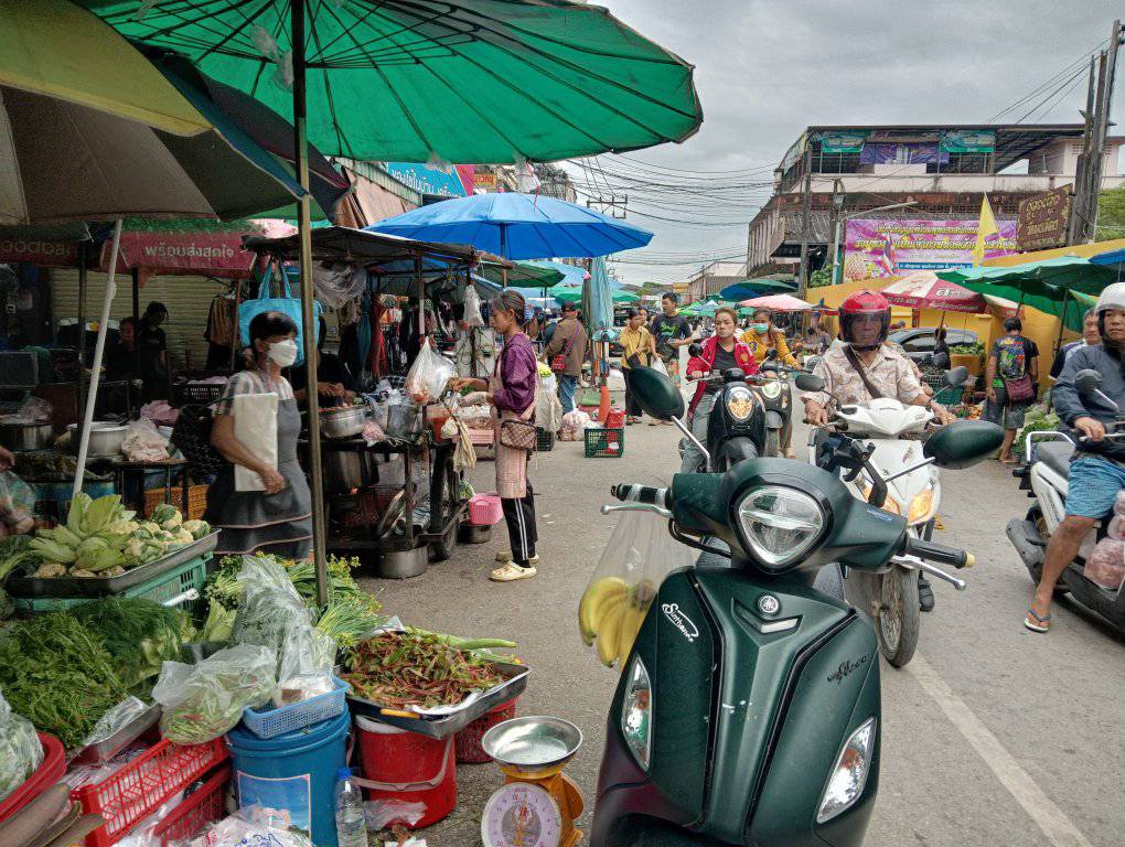 タイ北部ツーリング2日目、チェンライの朝はホテル周辺散策から。少し歩けば市場がありました。