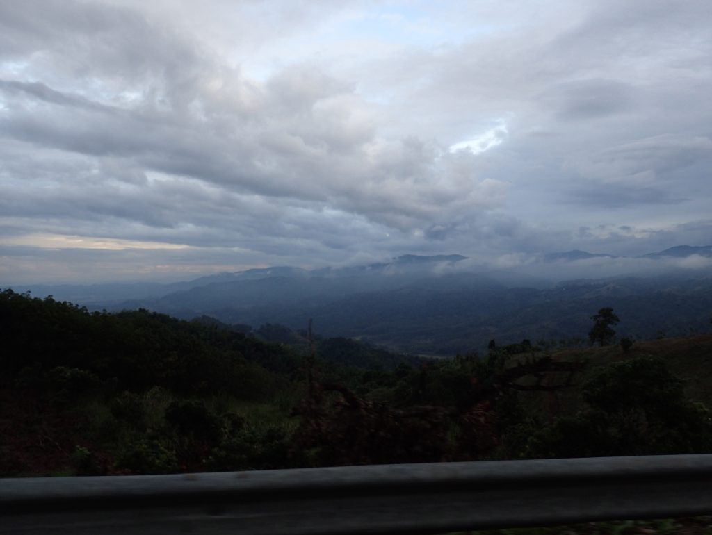 どんどん山に入り、標高が高くなっていきます。気が付けば雲と同じ高さに・・・日没ギリギリというところで、なんとか本日の宿に到着。