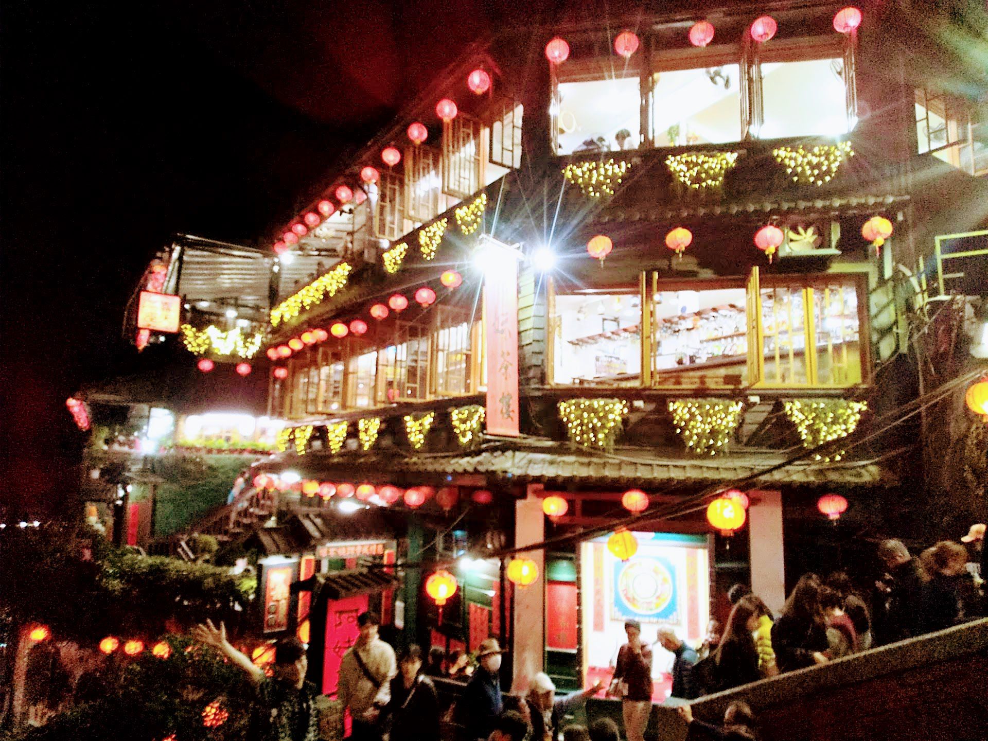 ツアー初日は空港から専用車で十分・九份へ。バイクでは難しかった九份の夜景を楽しめます。